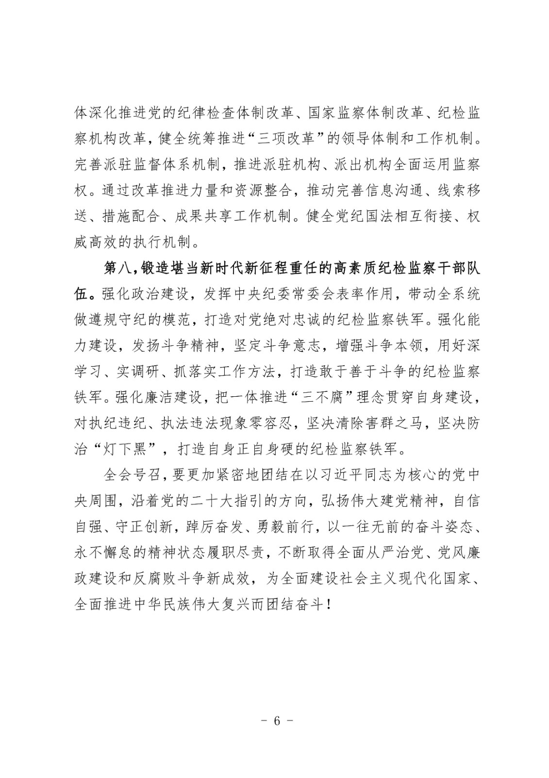 中国共产党第二十届中央纪律检查委员会第二次全体会议公报